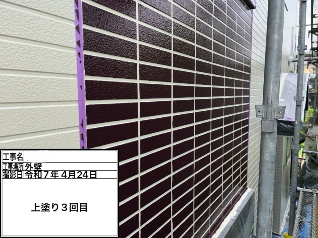 外壁のタイル調のデザインがしっかり活きており、凹凸感や奥行きが出て、高級感のある仕上がりになりました。